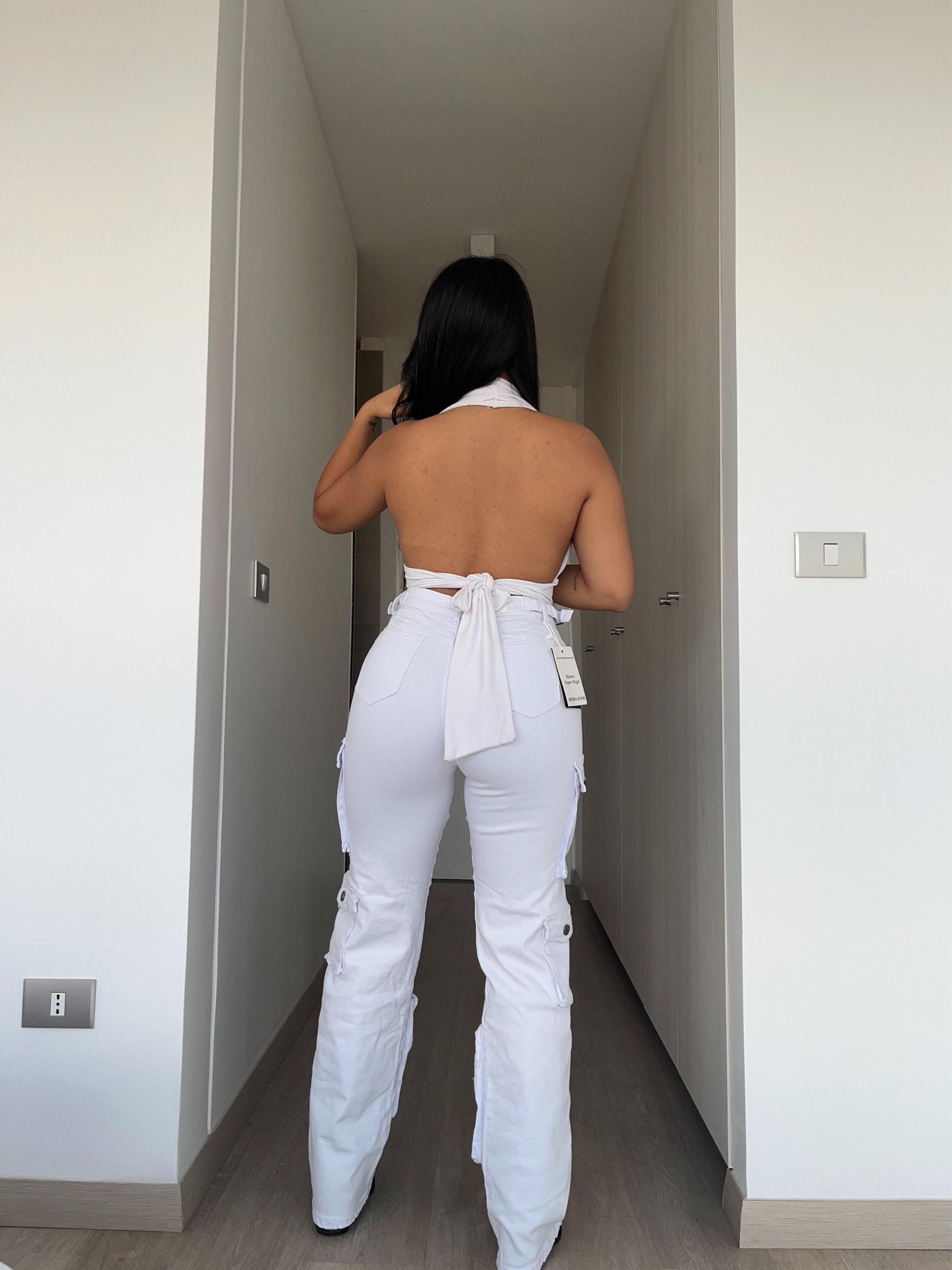 Estos jeans cargo blancos están confeccionados en un tejido elasticado que garantiza comodidad y libertad de movimiento. Su diseño funcional incluye múltiples bolsillos cargo, perfectos para llevar tus objetos personales con facilidad. Ideales para quienes buscan una prenda versátil que combine estilo contemporáneo y practicidad en el día a día. Una elección experta para un look casual sin renunciar al confort.